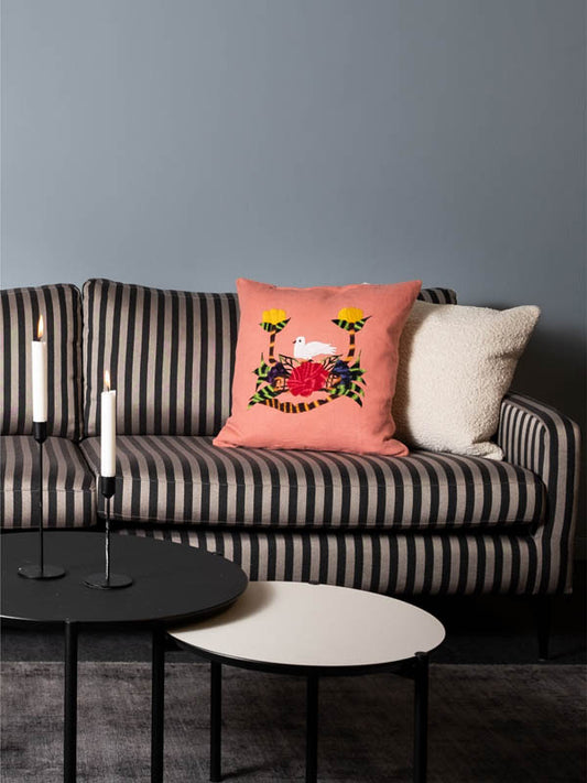 Dove on Pink Linen Cushion Cover