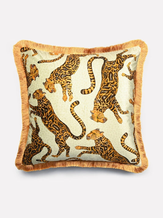 Cheetah Kings Stone Fringed Velvet Cushion Cover