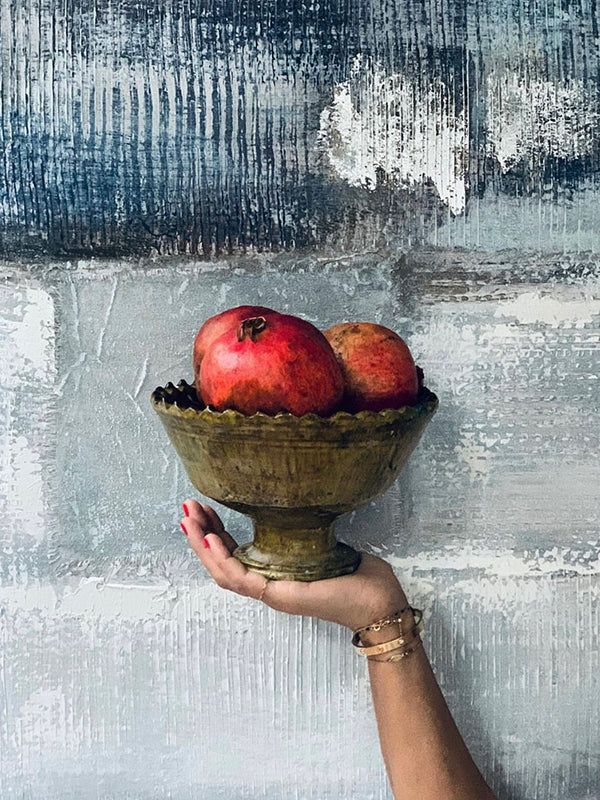 This handcrafted Tamegroute fruit bowl makes for a beautifully sculpted centerpiece. Made as a bowl for mixing henna (by hand) the ridges around the rim allow for the fingers to be wiped free of any residue. Today, it’s most commonly used as a decorative bowl for fruit or even as a planter. However you chose to use this piece it will be sure to make a beautiful statement piece in your home.