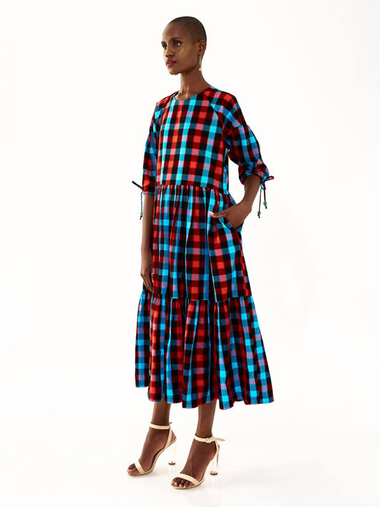 Checked Turquoise & Red Tiered DressVendor:Moto MotoRegular price $188.00Regular priceUnit price per-