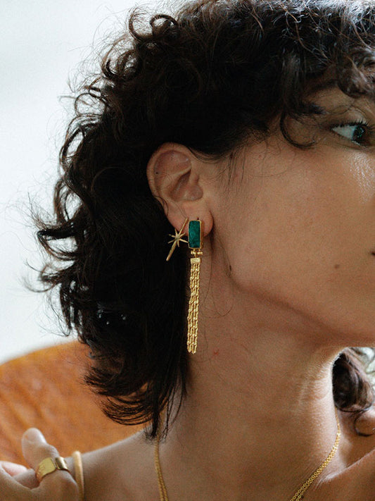 Everly Emerald Chain Drop Earrings