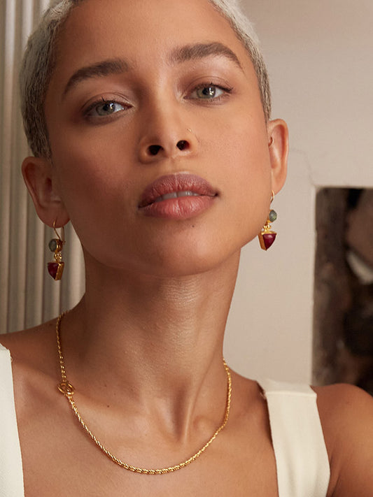 Hydra Labradorite and Ruby Drop Earrings