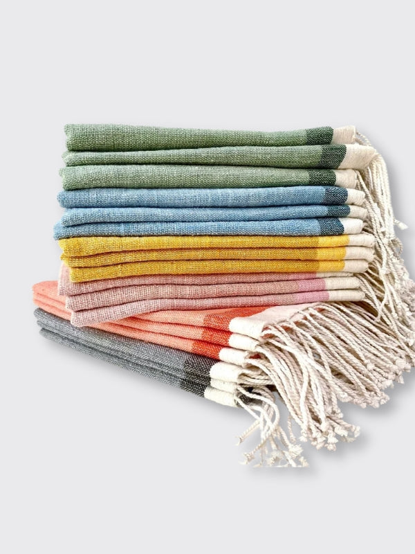 Enhance and freshen your kitchen or bathroom natural decor with this beautifully soft Coral coloured hand towel. This hand towel has been made entirely by hand using 100% cotton, certified fair trade in Ethiopia by QÄSA QÄSA’s partner artisans Sabahar using time-honoured weaving traditions. The tassels on the ends are meticulously hand tied with patience and care. The hand spun Ethiopian cotton adds a unique texture that will continue to soften and become more absorbent with each wash.