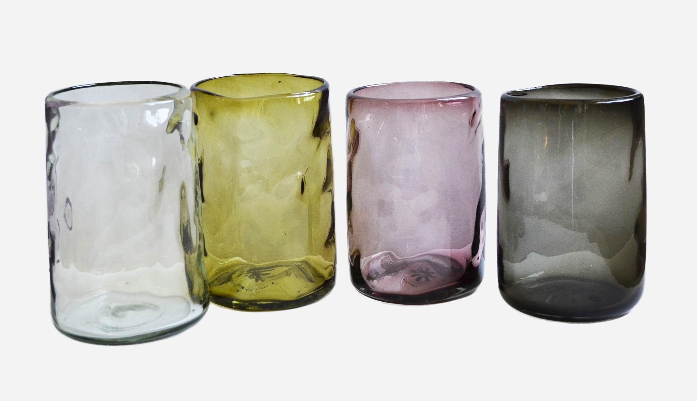 Made from 100% recycled glass, the coloured glasses are handblown in Tonalá, Jalisco, using traditional methods. This results in slight variations in size and bubbles, adding individuality and texture to the pieces. The recycled glass tumblers are available in 6 colourways and come as a set of 8.