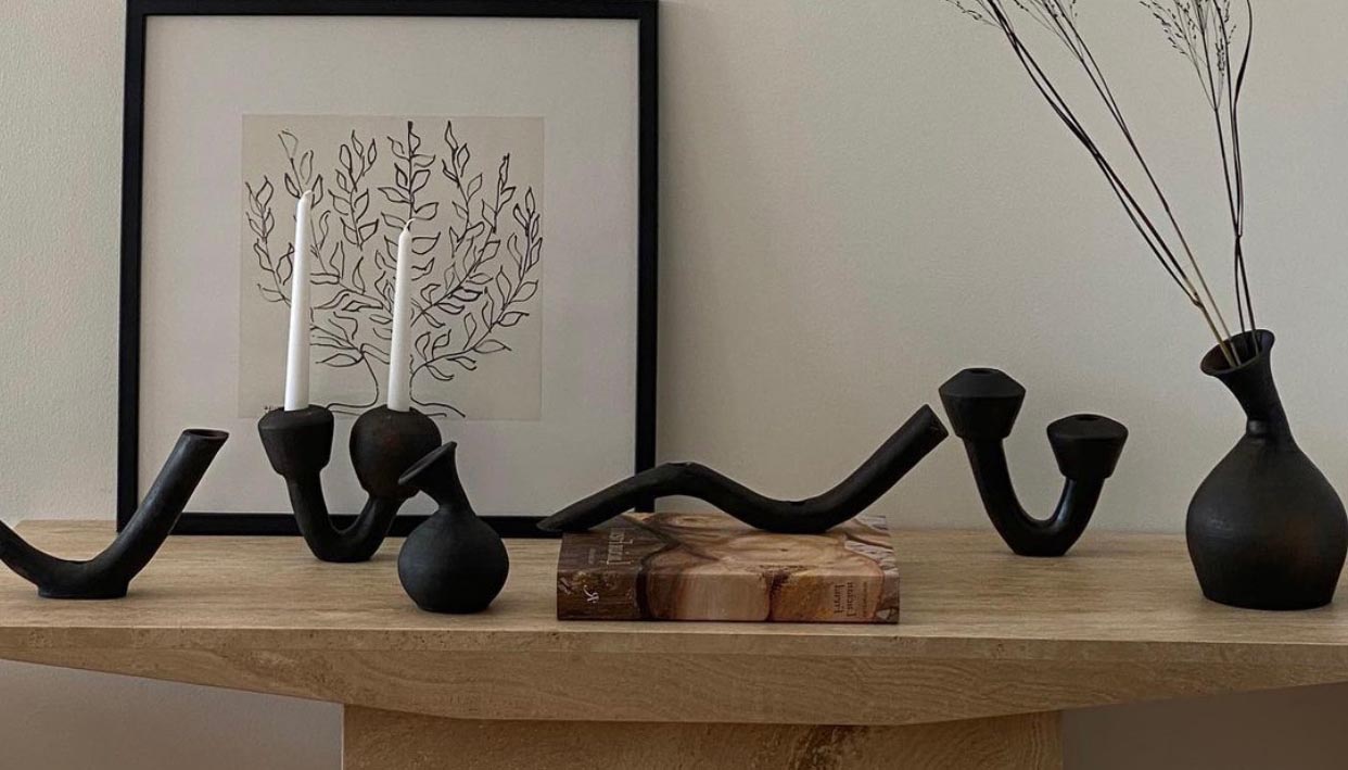 Masterfully handcrafted ceramic candlestick holder inspired by the Ogene double bell instrument found in Southern Nigeria. The Baté candelabra’s unique design features an elongated double neck extended from the base and topped with shorter heads. Sculpted by hand, each custom piece is created by artisans using traditional indigenous techniques. The stunning piece can also be styled alone as a statement decorative ornament.