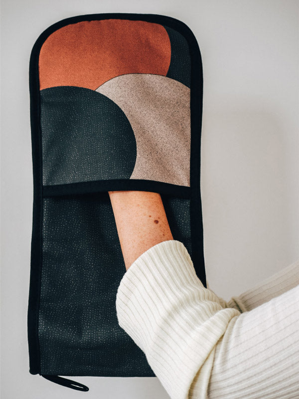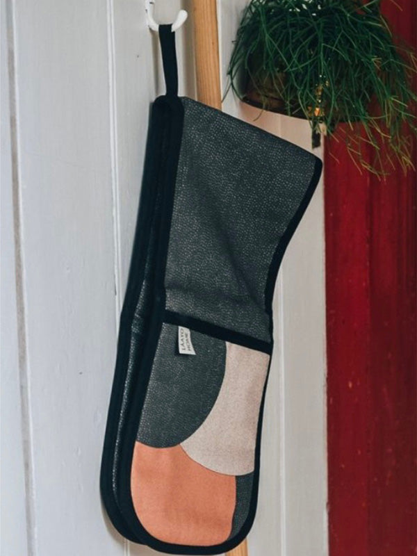 These protective grey double oven gloves are ideal for amateurs and connoisseurs alike. Made from 100% cotton, the oven mitts are both durable and comfortable. The oven gloves are grey in colour with a contemporary design at the mitts. They come with a hook for hanging. Complete the look with the designer's matching apron.