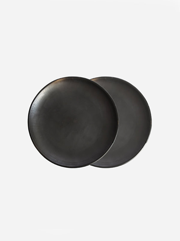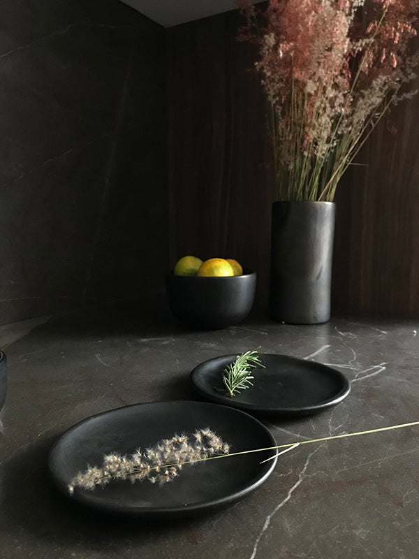 The black clay dinner plates are made using local traditional artisanal technique called barro negro. After soaking clay is filtered for 20 days to filter impurities, the clay is smoked to create the black colour and burnished by polishing the surface with a quartz crystal. This gives the dinner plate its warm glossy finish. To finish, the pieces are wood-fired in underground pits or kilns.