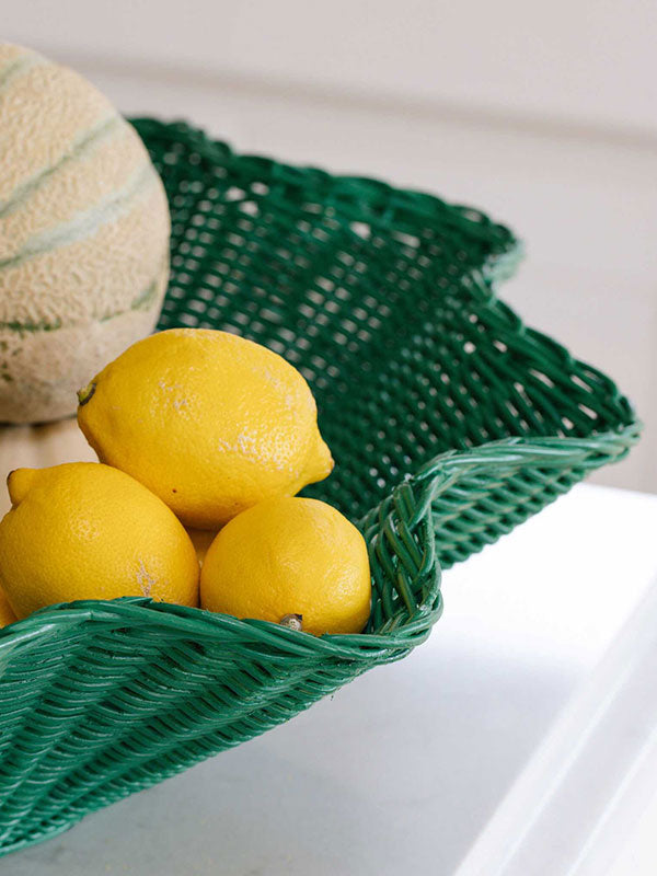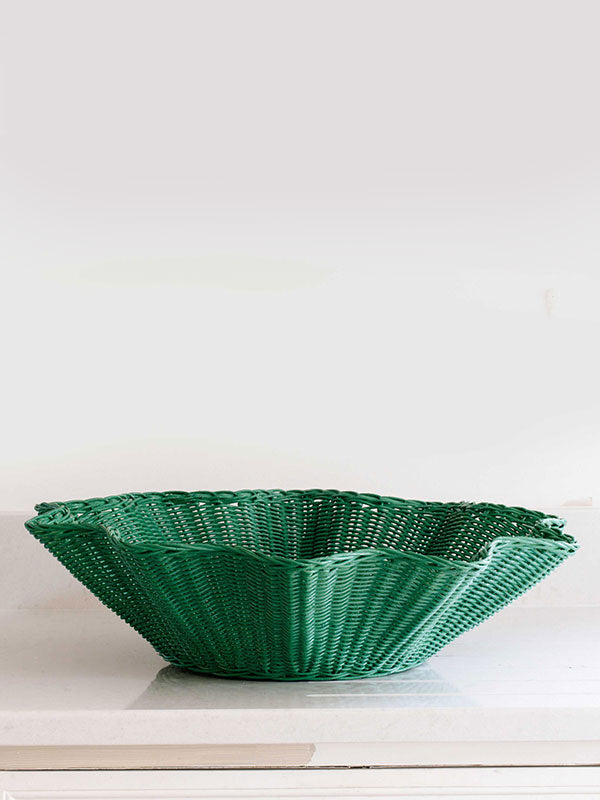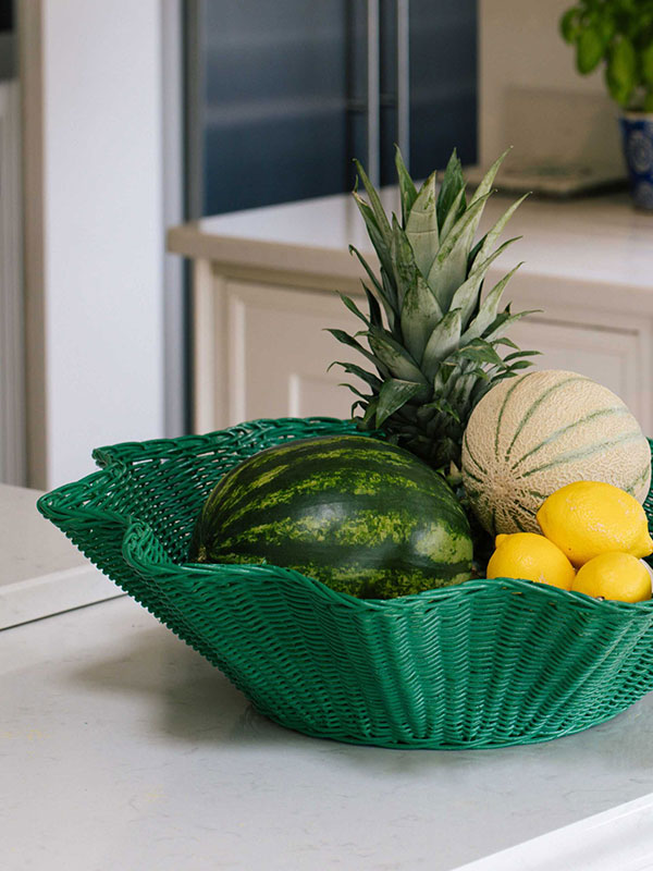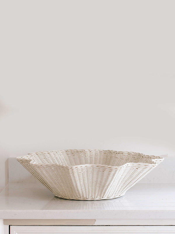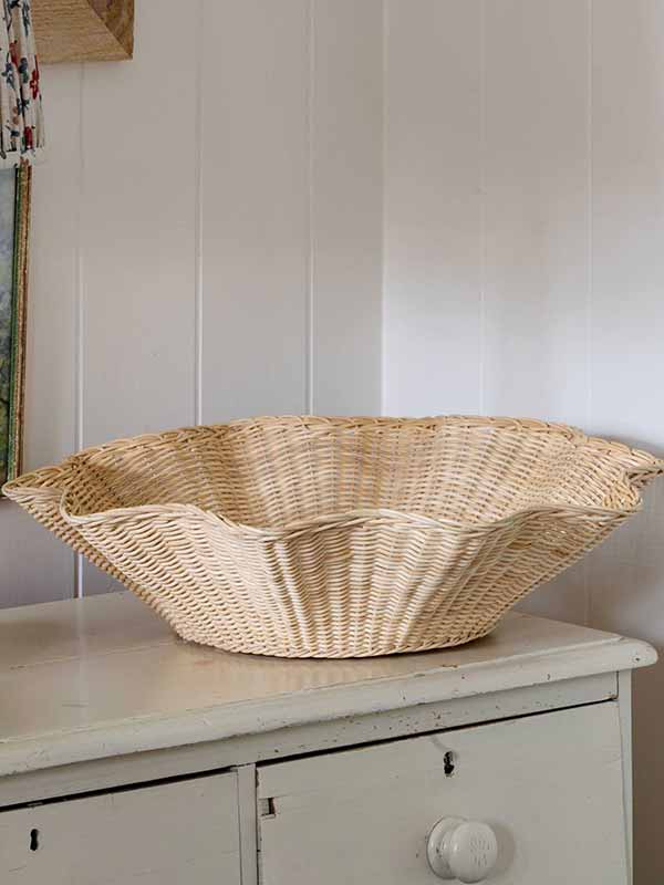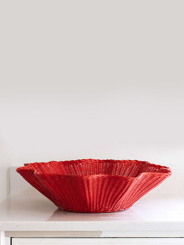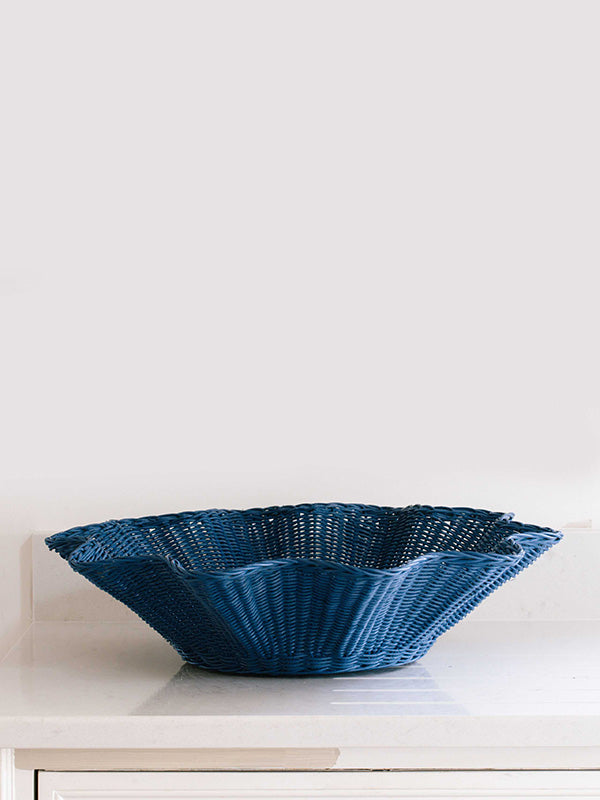 A Natural Wavy Bowl handwoven from rattan by artisans in India. This large wavy wicker bowl is available in 5 different colours; natural, off-white, red and blue. A versatile piece that can be used as a fruit bowl, table centrepiece, storage basket or simply just as decor. We love it on a kitchen island, dining table or by the front door.