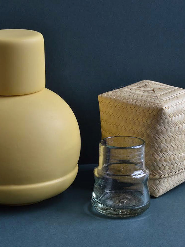 Made from 100% recycled glass, the coloured glasses are handblown in Tonalá, Jalisco, using traditional methods. This results in slight variations in size and bubbles, adding individuality and texture to the pieces. The recycled glass tumblers are available in 6 colourways and come as a set of 8.