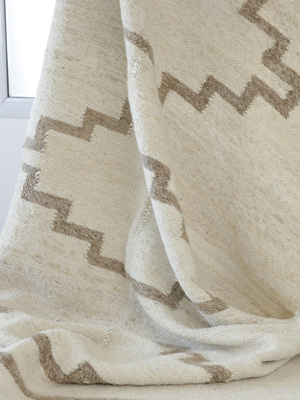 Andes Inca rug in earth and cement is a versatile addition to your room. Made from 100% sheep's wool, the textured rug has been hand-woven on a loom by artisans in Puna, an arid plateau in the Andes that has varied scenery with mountain passes, salt lakes and volcanoes. The cream wool rug has a soft earthy grey geometric design that will add interest to and complement most interiors.
