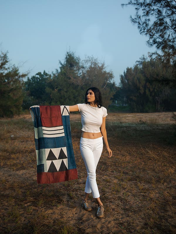 The Peace Silk Cloth is a completely handmade artisan product, made by artisans and their families who've been weaving silk for the last few generations. In this age of fast fashion, watching the slow process of making fabric by hand is almost meditative. The methods used by the locals are environmentally friendly and sustainable. First the artisans remove fibres from empty cocoons. They then gather the yarns and spin them by hand using the time-honoured 'Charkha' or the spinning wheel. Finally, to the most treasured part, where they breathe life into the Ahimsa using the ancient heritage wooden loom. Each piece takes at least a week to produce, excluding the harvesting and printing by Aeshanne's artists Ali bhai, Deepak and Bachchu.