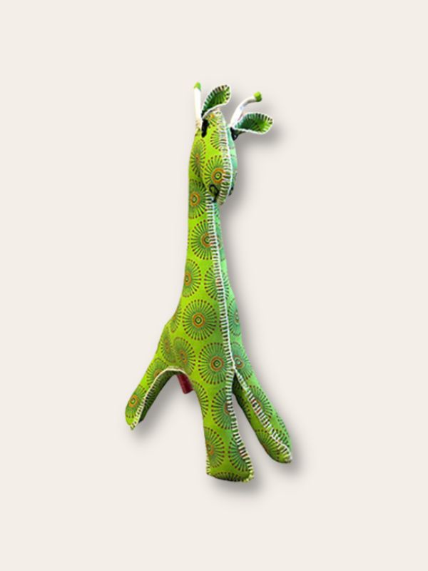 The baby giraffe is hand sewn traditional African Shweshwe fabric. Suitable for all ages the handmade giraffe makes a one-of-a-kind gift, the perfect accessory for a child’s nursery and irresistible companion.