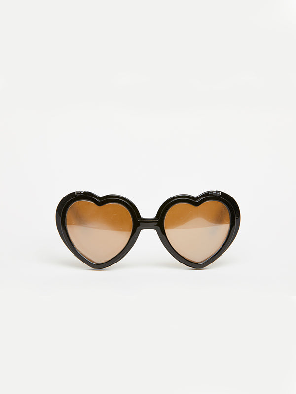 Get playful this summer with these black heart shaped sunglasses by Love Specs. Featuring a solid black heart shaped frame made from recycled plastic and tea coloured lenses. Complete with flip up diffraction lenses so you’ll see hearts wherever there is light. Available in black, pink and yellow.
