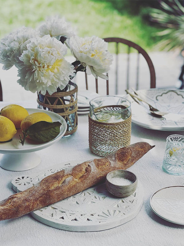 Perfect for al fresco dining this hand-braided Chabi Chic jug will bring the Mediterranean to your table. Made from woven raffia and recycled glass, the entire collection is handmade in Marrakech by artisans who have been practicing their craft for generations. Team up with the designer’s Beldi glasses or use as a vase with your favourite flowers.