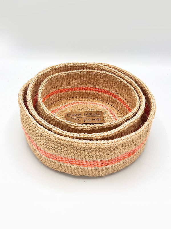 These baskets find their main purpose in the kitchen, carrying fruit or bread, but can complement any room in your home to give a place to a gathering of items. Embrace the rich tradition of basket weaving in Kenya as our talented artisans explore their creative freedom to tell their own captivating basket stories. From rolling their own sisal twine to weaving every intricate detail, each basket is a testament to the craftsmanship and dedication of the artisans head and heart.