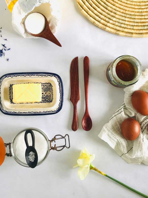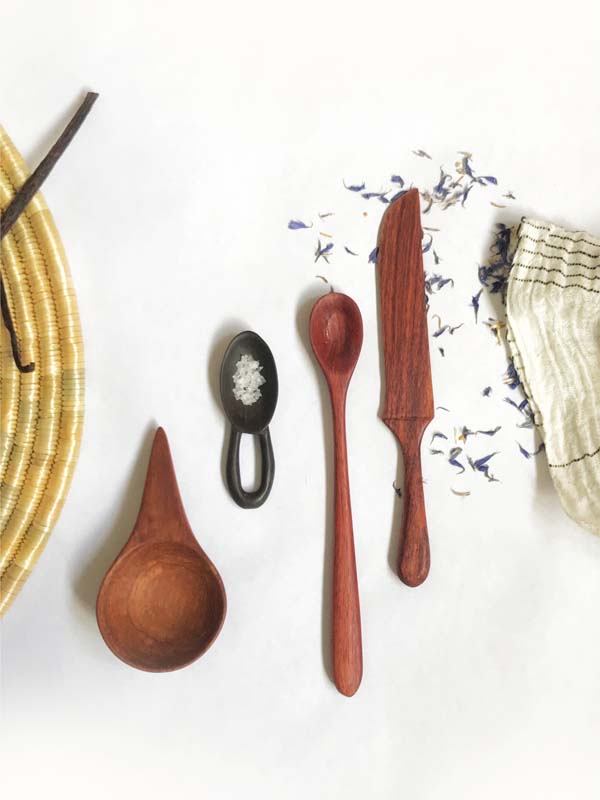 A sweet gift set consisting of a Mninga Wood jam spoon and a butter knife, a Mninga scoop and African Blackwood scoop. The perfect gift for any foodie lover, these utensils can be used everyday in the kitchen, doubling up as elegant serving ware when having friends over for brunch or tea.