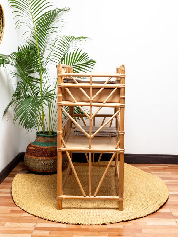 Add a bohemian flair to your little one's bedroom with Chika & Co's baby changing table with drawers. Handmade by Ghanaian Artisans from sustainable rattan, the wooden baby changing table has a minimal changing table with a sturdy frame and sides that provide your child with maximum safety. Complete with drawers and extra shelving underneath, you'll find plenty of room to store muslins, wipes, and diapers. Lightweight, functional, and made using only natural and eco-friendly materials, this is a much welcome addition to any nursery.