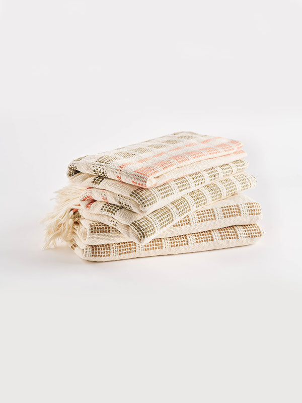 Woven with soft, warm colours, this large organic cotton throw is inspired by the Colombian folkloric music and dance "Cumbia." Made by a women artisan cooperative in Charalá, Colombia, the throws are woven using organic cotton and natural dyes and have a textured striped weave. The cotton throws are large in size and will offer full coverage for most bed sizes and can be used in the living room too. We love paired with complementary pieces from the designer's collection.
