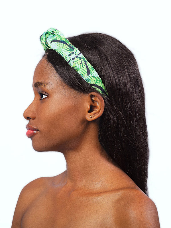 Eclectic Chique’s beautiful halo headband in their bespoke DODO green patterned print handmade in Lagos. Easy to wear and is the perfect finishing touch to your look.