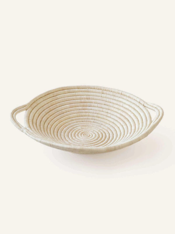 Indego Africa's woven round bowl is a versatile piece that can be used throughout the house. Crafted by female artisans in Rwanda, the baskets are handwoven using a traditional Rwandan technique where hand-dyed strands of sisal are wrapped around bunches of sweetgrass to create tightly coiled, durable baskets. The shallow woven baskets can be used as a fruit bowl, bread basket, or displayed as an accent piece. An excellent gift, the woven bowl is also available in black.