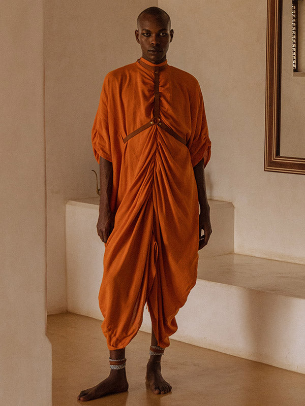 An elegant, reversible collar tie with an open, airy feel. Gathered with belt loops on either side. Best paired with our Harness Belt.