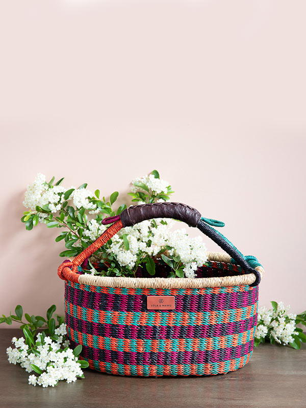 Hand-woven with love by a cooperative of women artisans in the Bolgatanga area, Northern Ghana. All Lola & Mawu baskets are fair trade and every purchase provides meaningful income to the makers.