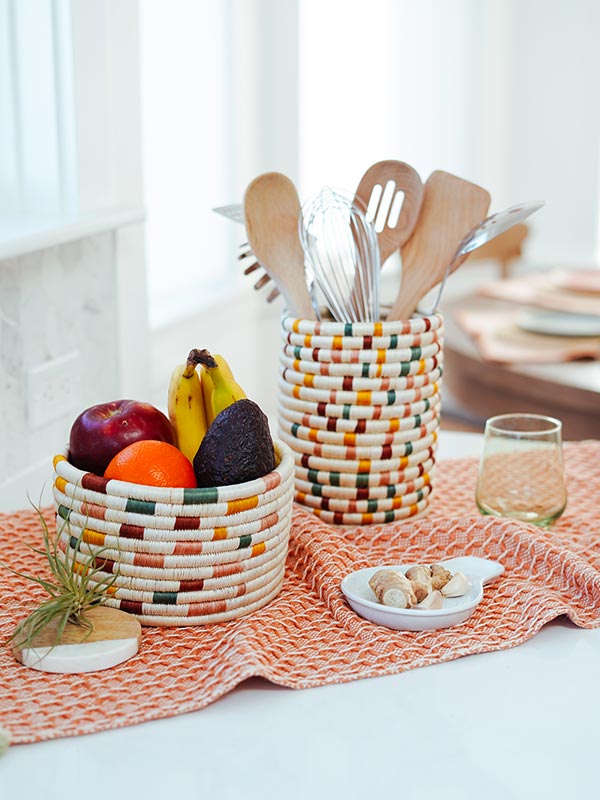 Zuahaza's new storage and decorative baskets are hand woven by a cooperative artisans from the Boyaca region of Colombia, using a coil basket weaving technique. Each individual basket is one of a kind, making each basket a special handmade treasure.