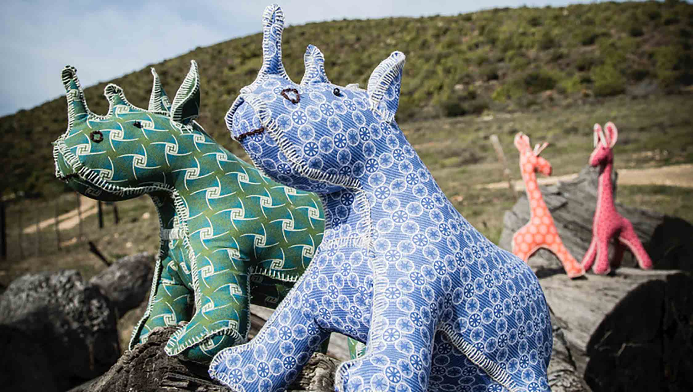 The baby elephant is hand sewn traditional African Shweshwe fabric. Suitable for all ages the handmade rhino makes a one-of-a-kind gift, the perfect accessory for a child’s nursery and irresistible companion.