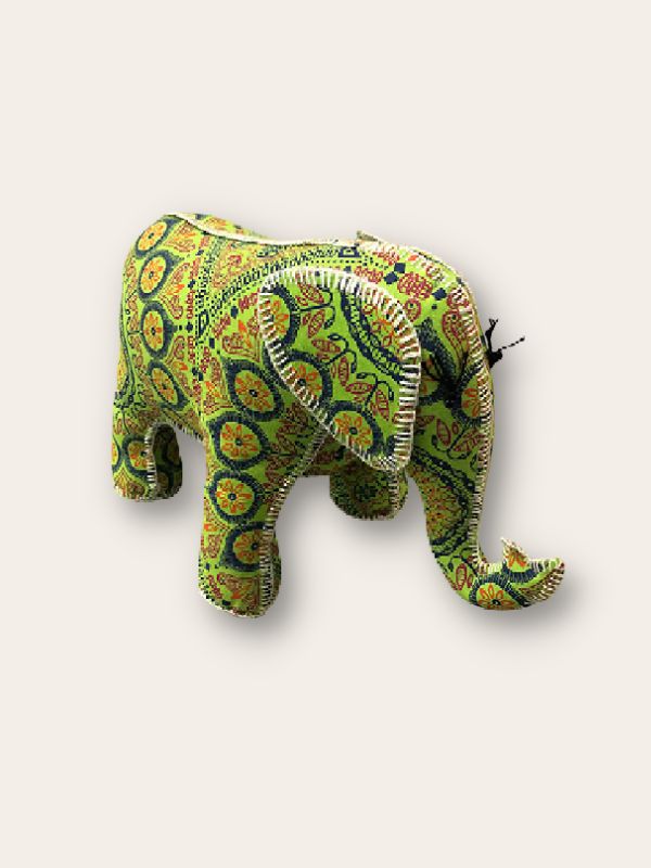 The large elephant is hand sewn traditional African Shweshwe fabric. Suitable for all ages the handmade elephant makes a one-of-a-kind gift, the perfect accessory for a child’s nursery and irresistible companion.
