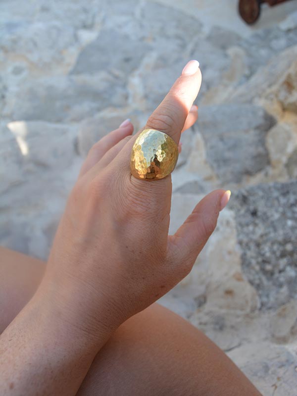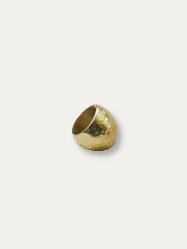 The Jabali Ring symbolises confidence and strength. Made from 100% recycled brass, the chunky ring has been hand-crafted by expert artisans in Kenya using traditional crafting and polishing techniques and hammered for a textural finish. The designer encourages you to feel into your confidence and individuality when wearing her.
