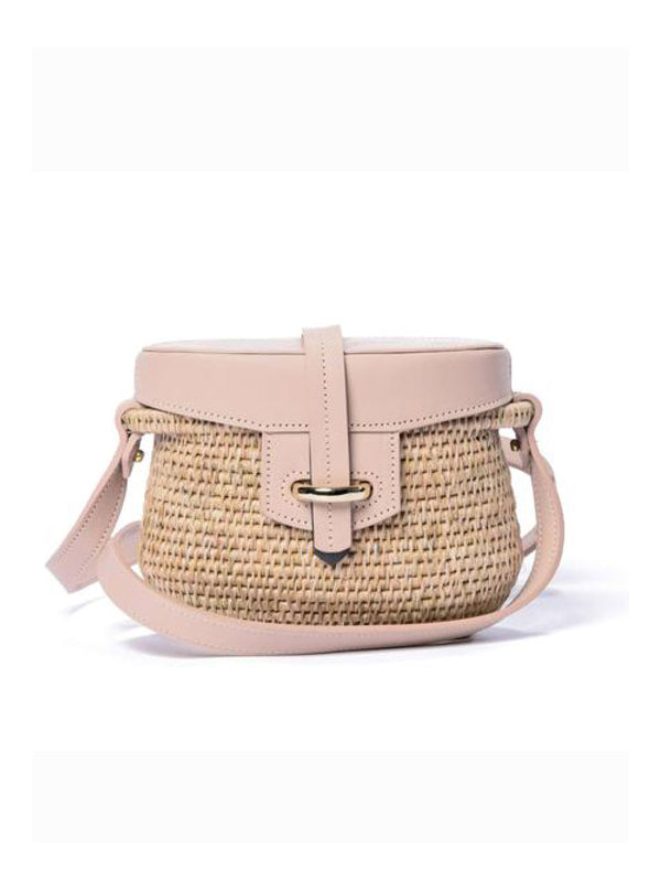 The Jabu Basket Bag in romantic pink quartz is sturdy, versatile and timeless. Handwoven in Eswatini, this woven basket bag is made from lutindzi grass – indigenous to Eswatini – and locally grown sisal fibre. The bag features a cuoio pink leather lid, gold hardware and hand carved cow horn details. Perfect for weddings, travelling, or an every day spring/ summer handbag.