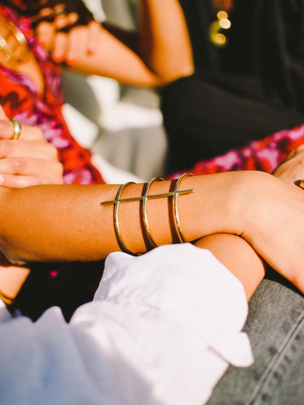 Featuring clean, crisp lines, the Kamili Cuff has been hand-crafted by expert artisans in Kenya using traditional crafting and polishing techniques. The wide gold cuff bracelet is made from 100% recycled brass that matches a yellow gold in colour but is a sustainable alternative to gold. The Kamili Cuff can be worn alone adding character to your wrist, or paired effortlessly with the Kamili choker.