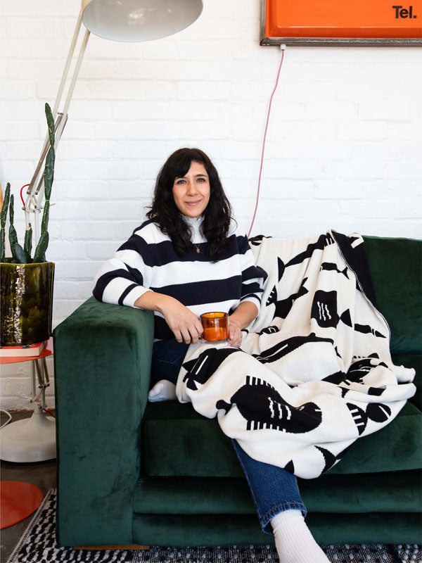 A reversible throw featuring a playful wave design. ‘Move & Groove’ by Leo Rheeder was selected by the public as one of the top three winning designs as part of Something Good Studio’s annual Young Designer Competition. Made in South Africa, the two-tonal blanket, in blue and ecru, is made from 100% cotton sourced locally from farmers and custom dyed in the Eastern Cape. Jacquard reversible knit and complete with a ribbed trim on two sides. Use as a colourful bed throw, brighten up a kids bedroom, or keep it rolled up by your sofa for those cosy nights in.