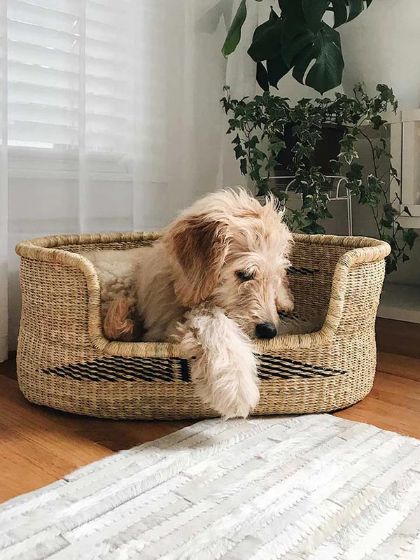 Medium hand-woven dog bed made from Veta Vera grass for your medium sized dogs. Hand-crafted by artisans using a time-honoured weaving technique, each dog basket is strong, sturdy and durable to stand the test of time. Available in 6 colourways. A chic, functional basket for your four-legged friends. Woof.