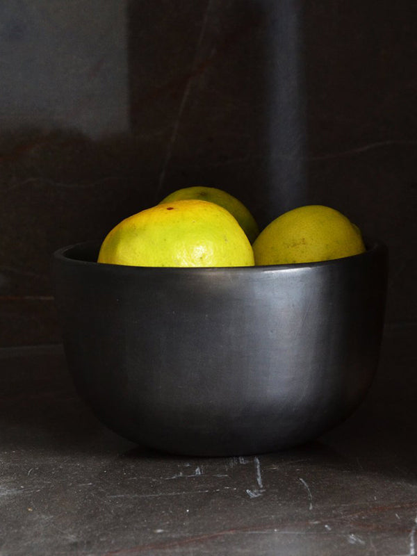 The black clay bowls are made using local traditional artisanal technique called barro negro. After soaking clay is filtered for 20 days to filter impurities, the clay is smoked to create the black colour and burnished by polishing the surface with a quartz crystal. This gives the dessert plate its warm glossy finish. To finish, the pieces are wood-fired in underground pits or kilns.