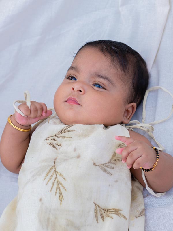 A new baby in the family? This thoughtful baby gift set features 4 unique pieces made using safe organic materials that are not only kind to little ones, but to the planet too. Made in small batches at a home studio in India, the prints on the fabric are naturally printed using silver oak leaves.