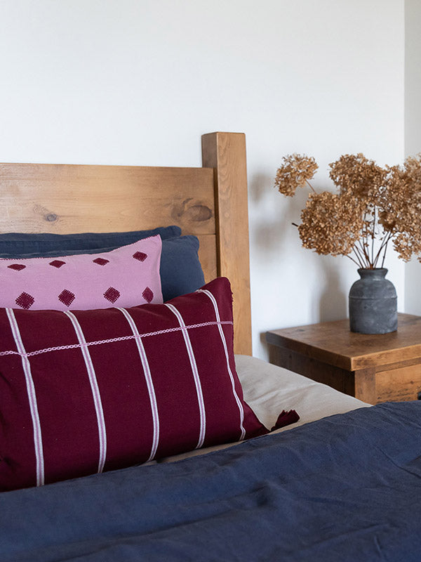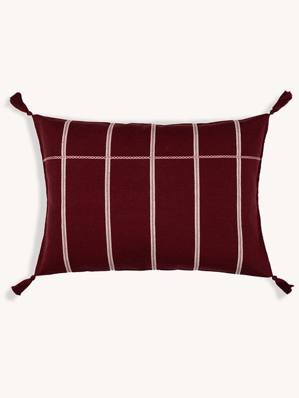 Rayas Stripe Zinacantan Handwoven Cushion - Burgundy