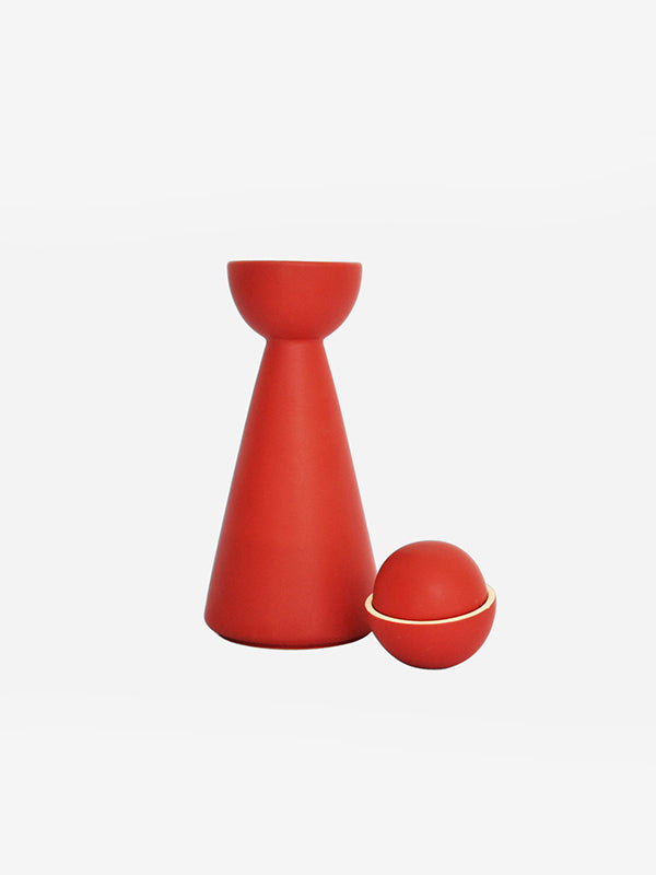 The Half Moon Carafe is designed to hold Mezcal, Tequila or any other liquor. Made in Mexico, the decanters take inspiration from the traditional water pitchers found in Tonalá and Tlaquepaque, Jalisco. Its cone-shaped body is a nod to the shape of agave leaves while the upper part takes the shape of a traditional mezcal cup. The head of the bottle contains two cups that can be used to serve the liquor or hold salt. The jug is finished in an red glaze, both inside and out. The carafes make a fantastic gift to any tequila lover.