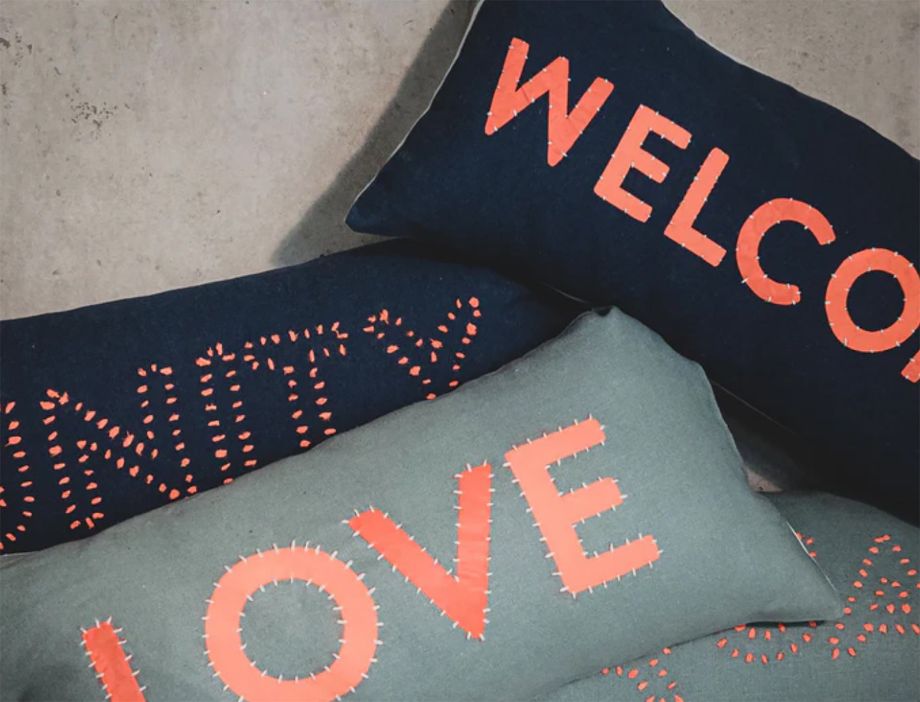Love Welcomes Her Story cushions were designed by a team of refugee women from across 9 countries. In contrast to the negative rhetoric of politicians on refugees in the news, they want to offer a hopeful alternative narrative of unity and inclusion. The welcome cushion is made from 100% upcycled linen and cotton and features a hand-stitched letters made using upcycled life jackets discarded in Greece.