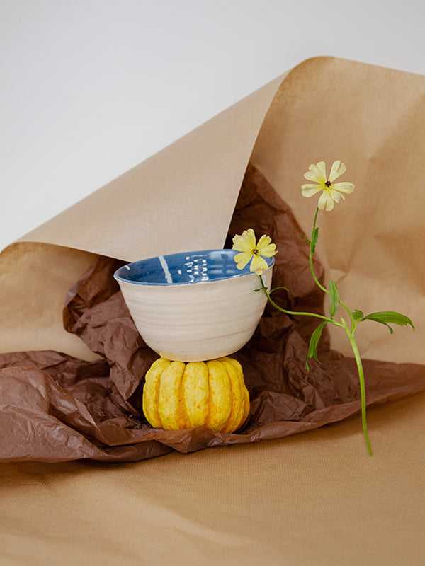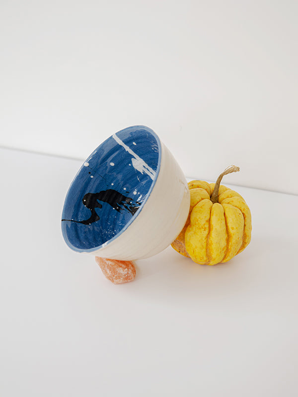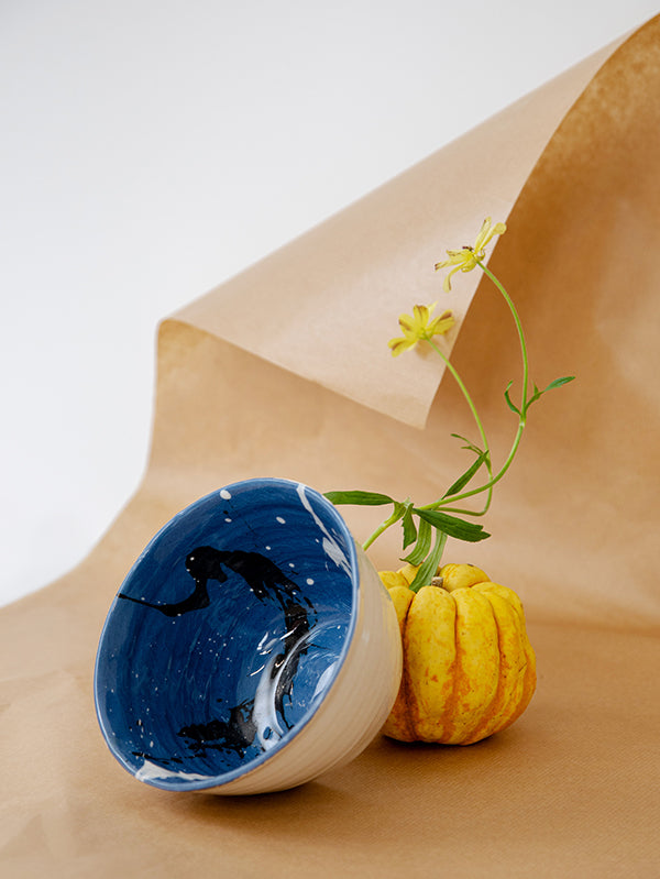 Perfect for the breakfast and dinner table alike, these striking striking blue splash design bowl are sure to add a dash of colour. Designed and handmade by Tessa Rudnick in her Herzliya studio in Israel, the bowls are hand thrown using earthenware clay. The design is brought to life with sweeping brushstrokes and drip marks.