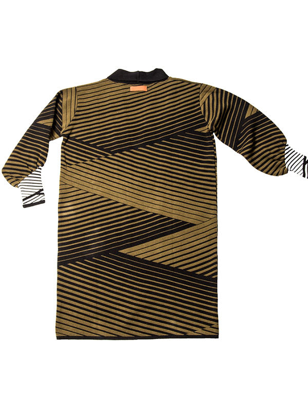 Make a statement in Romaria's striped long jersey. Features long volume sleeves with contrast cuff detail. Below-the-knee length and black ribber collar trim. The perfect item for a seamless transition from studio-to-street. Made of a soft, heavy weight cotton knit. To be layered in various ways to create a casual formal look.