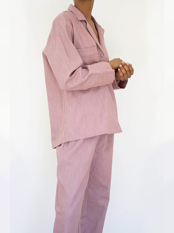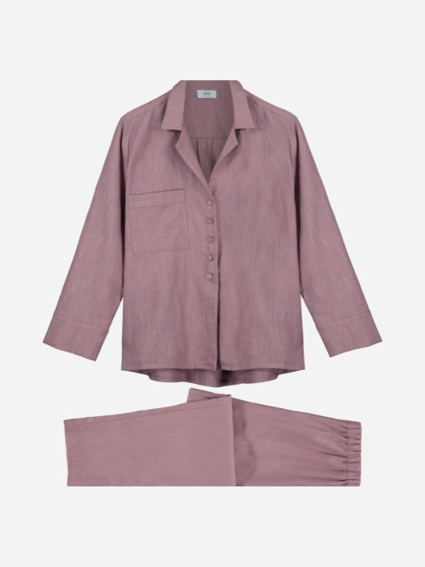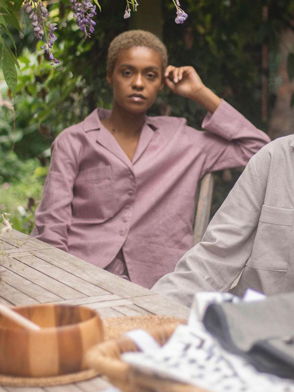 Láayo's Grace set is designed to be worn inside and outside of the bedroom. Cut from medium-light linen sourced from Italy and sustainably washed with bio enzymes to create a luxuriously soft finish. The pyjama shirt is comfortably sized with a chest pocket. The linen bottoms have two side pockets and elasticated waist. Complete the look with the designer's matching robe.