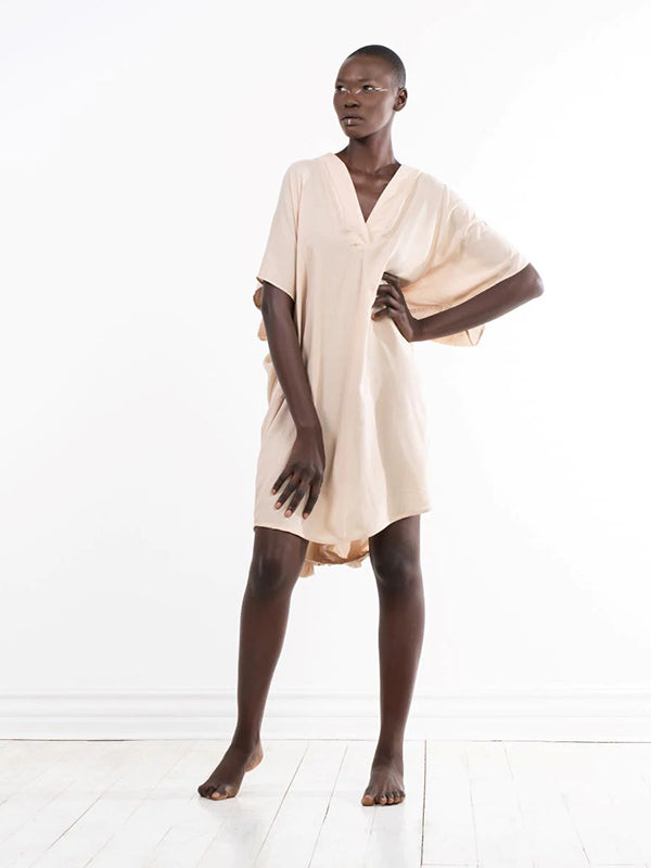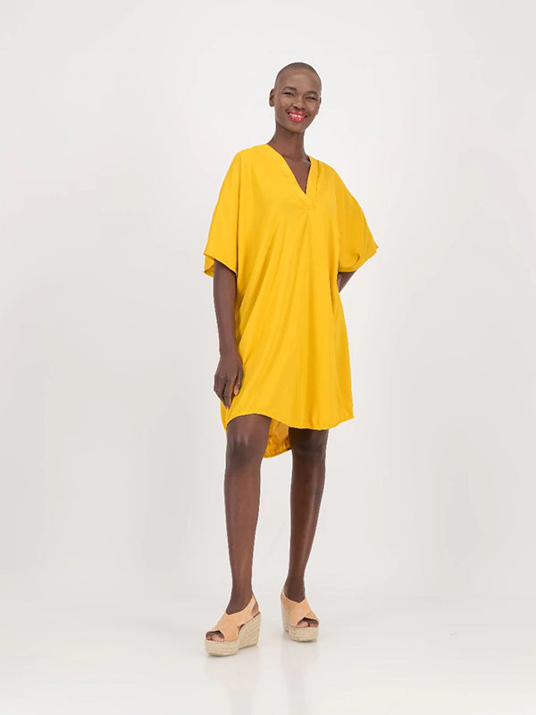 The sahara dress is made for the women who want to look fabulous without the fuss. This kaftan is created to be easy, enjoyable to wear and most importantly made to last. Designed with a loose fit, asymmetrical hem (short in the front, long in the back), front split opening at the neckline and wide, loose sleeves. This dress is perfect for those hot summery days paired with your favourite sandals or for a casual lunch with friends and family.