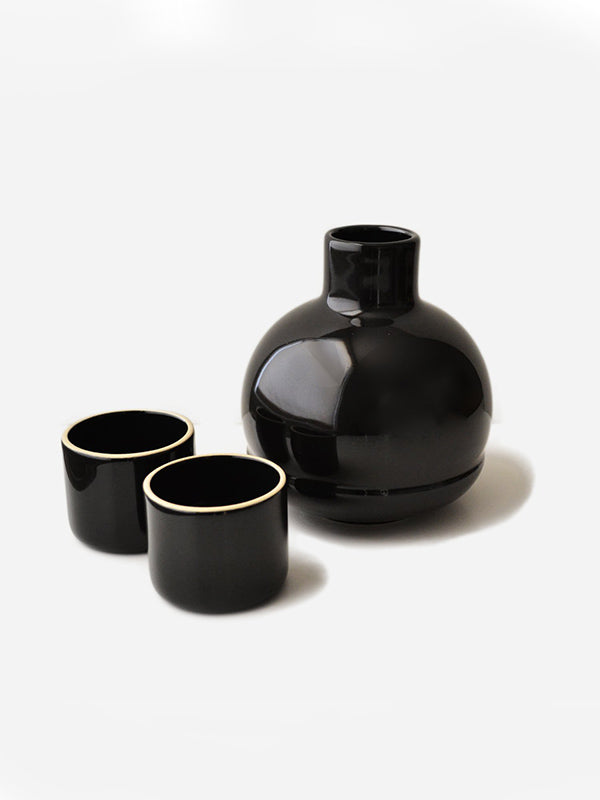 Bright Black Carafe with 2 Cups