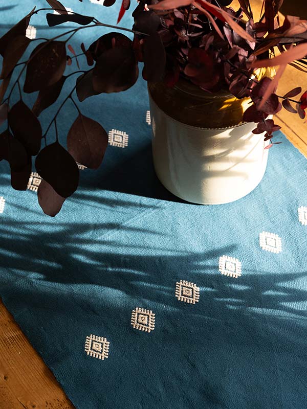 Luxurious in its handle, intricate in its detail and long lasting in its quality. A runner durable enough for everyday dining and beautiful enough to transform any tablescape or sideboard. The diamond motifs symbolise the universe and the path of the sun each day in mayan culture. Handwoven on the ancient backstrap loom taking 62 hours, a zero waste technique.