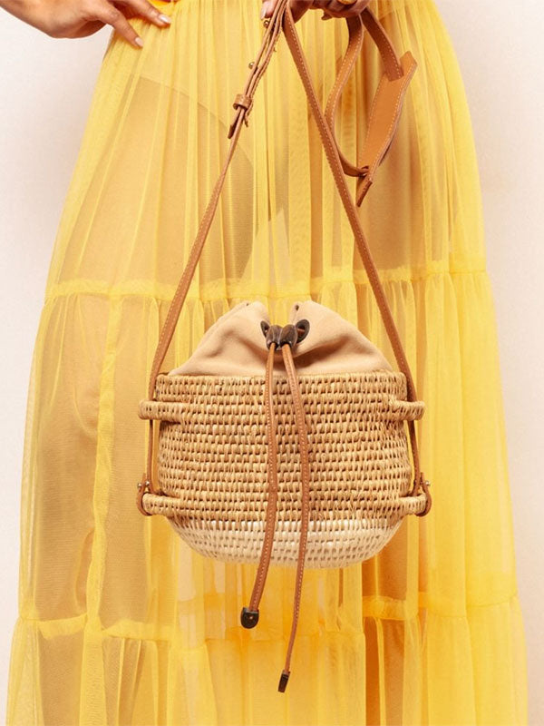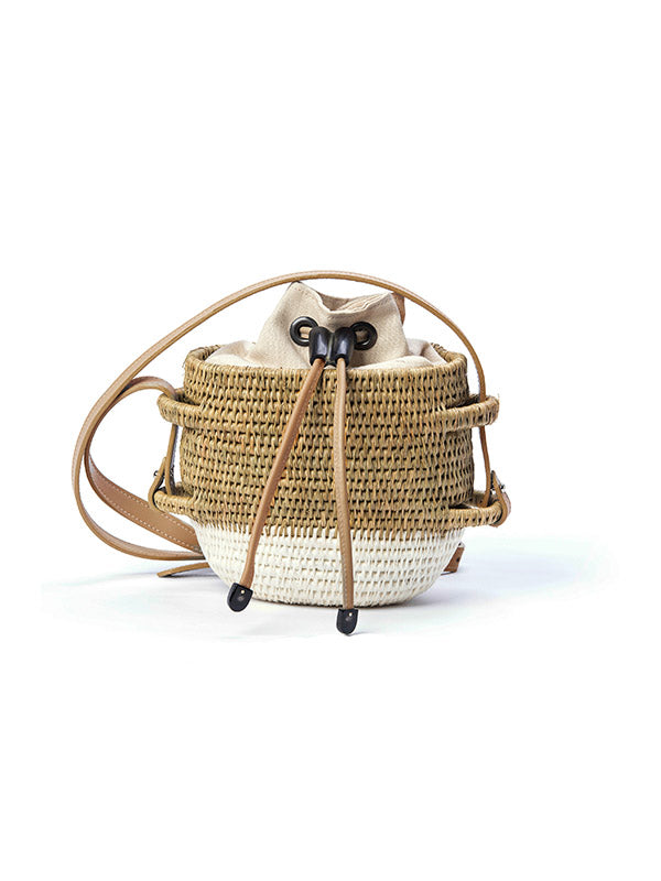 Smoke lutindzi grass with white sisal block, cuoio leather, stone hemp canvas, cow horn and gold hardware.