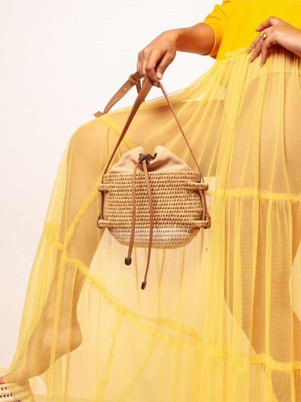 The Thembi Basket Bag is a timeless staple. Handwoven in Eswatini, this woven bucket bag is made from lutindzi grass – indigenous to Eswatini – and locally grown sisal fibre. The bag features a canvas lining with drawstring closure, gold hardware, hand carved cow horn details and an adjustable shoulder strap that allows you to wear it as a cross body bag. The perfect spring/ summer handbag for weddings, travelling and everyday occasions.