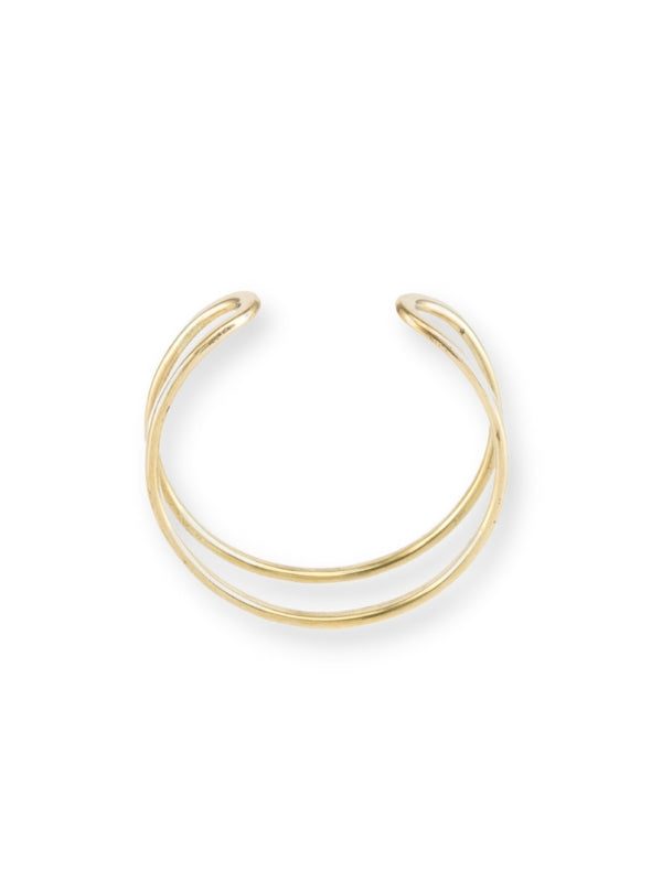 SOUL Design’s gorgeous gold split bangle is inspired by the Tuareg tribes whose progressive society has long embraced women’s rights. The bracelet has a two band design that loops together at either end and can be adjusted to fit to you. Made from recycled brass and plated in thick 9 carat gold for a golden finish. The bangle can be adjusted by pulling gently and can be worn on the wrist or used as a mid arm cuff. Wear both together for ultimate impact.