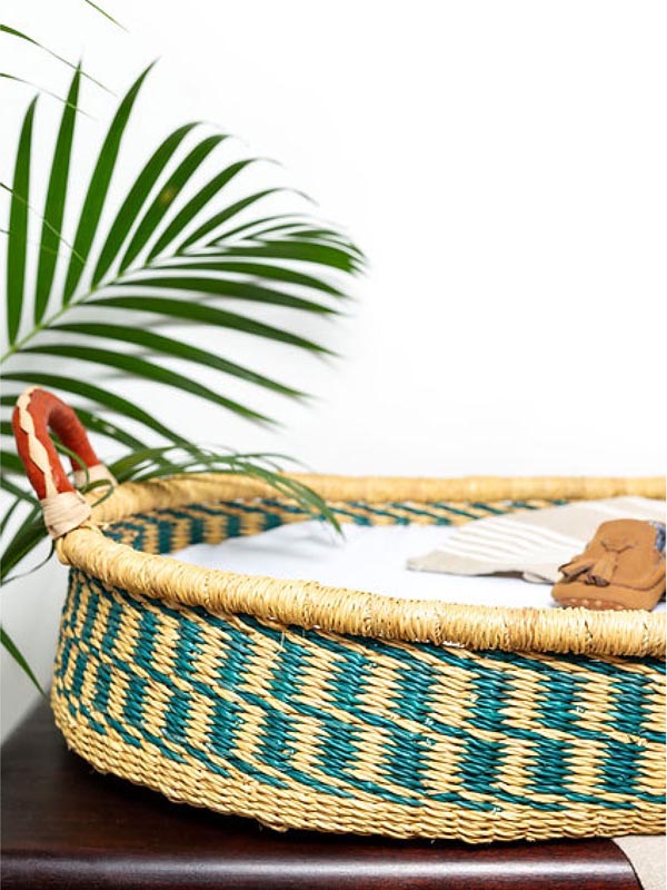Instead of having plastic changing mats in your home, try Chika & Co’s beautiful handmade Kɔkɔɔ baskets instead. A unique take on a traditional mat, these baskets have been lovingly hand woven by artisans in Ghana. The rattan grows in abundance and is strong and sturdy. These baskets are not only eco friendly but very durable too. The handles are covered with beautiful soft leather to make them stronger and more comfortable to use. It can be used after your bambino has outgrown it, as a toy basket, clothing basket and more.
