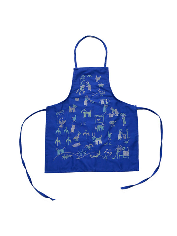 Village Story Embroidered Kids Apron - Blue
